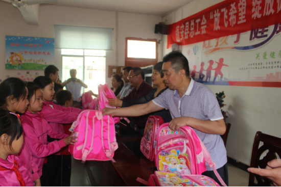 活动中,县总工会共慰问了52名困难职工子女和农民工留守子女代表,发放了书包、文具等,共计10000余元。(蓬安县总工会)